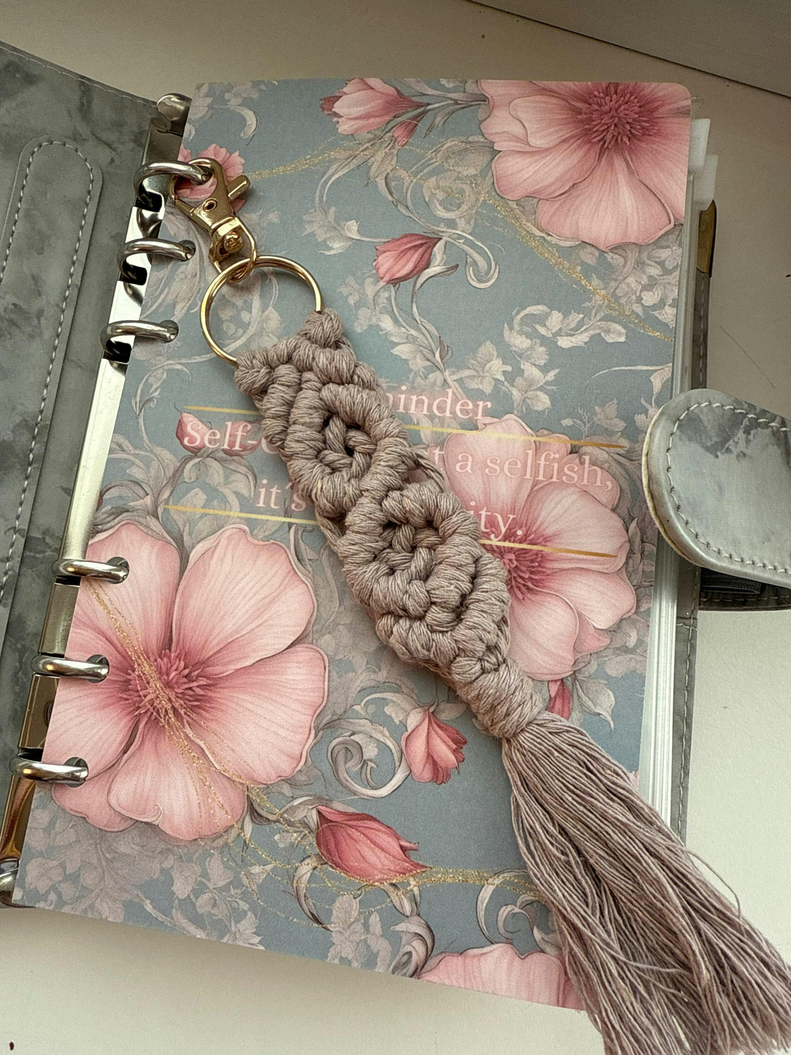Verschönere deinen Binder oder deinen Schlüssel mit dem süßen Makramee-Anhänger.